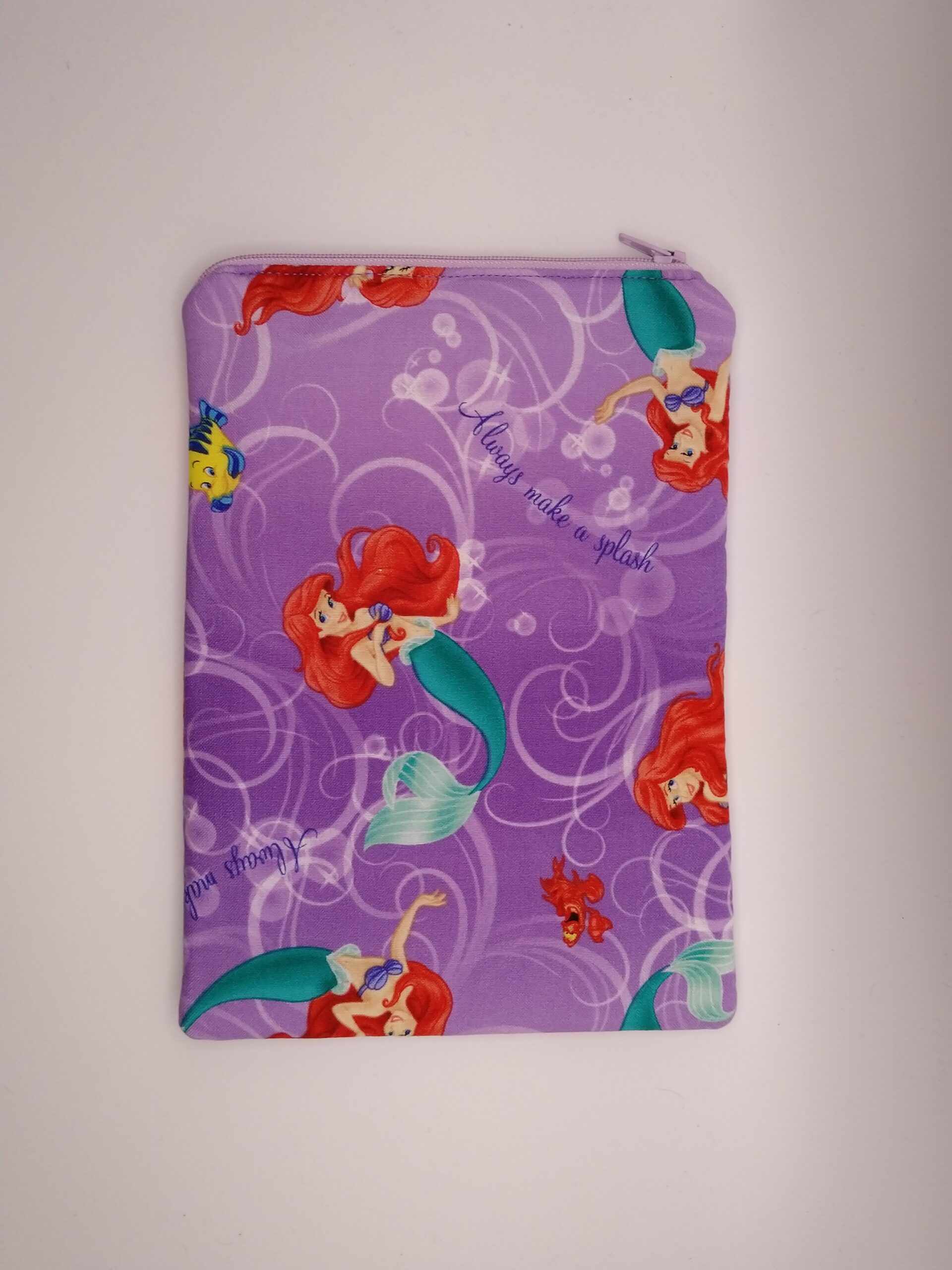 Handmade small zipper bag made with Little Mermaid fabric