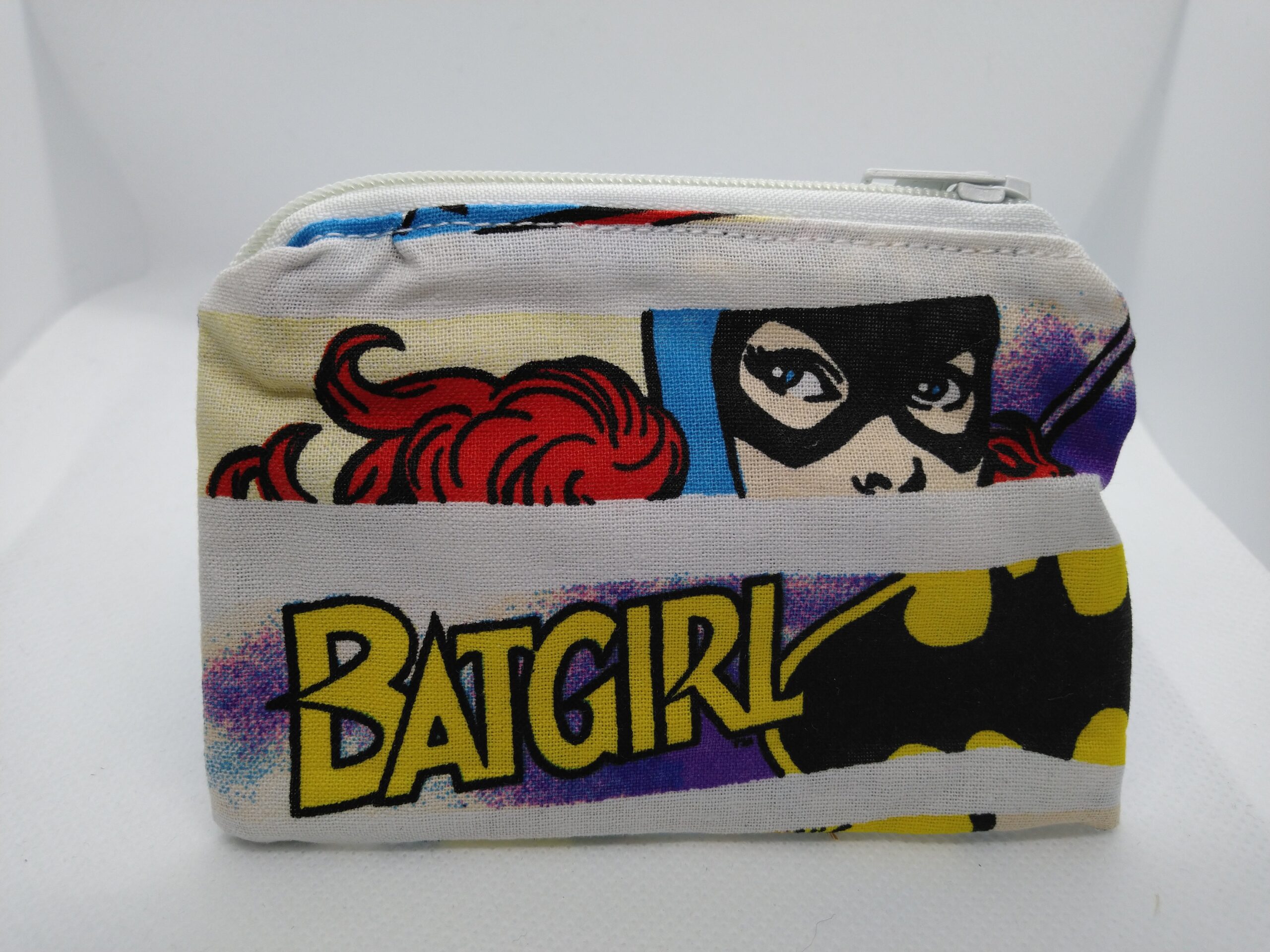 A really cute “handmade” coin purse made with Batgirl fabric. Bag can be used as a pouch, gift card holder or change purse.