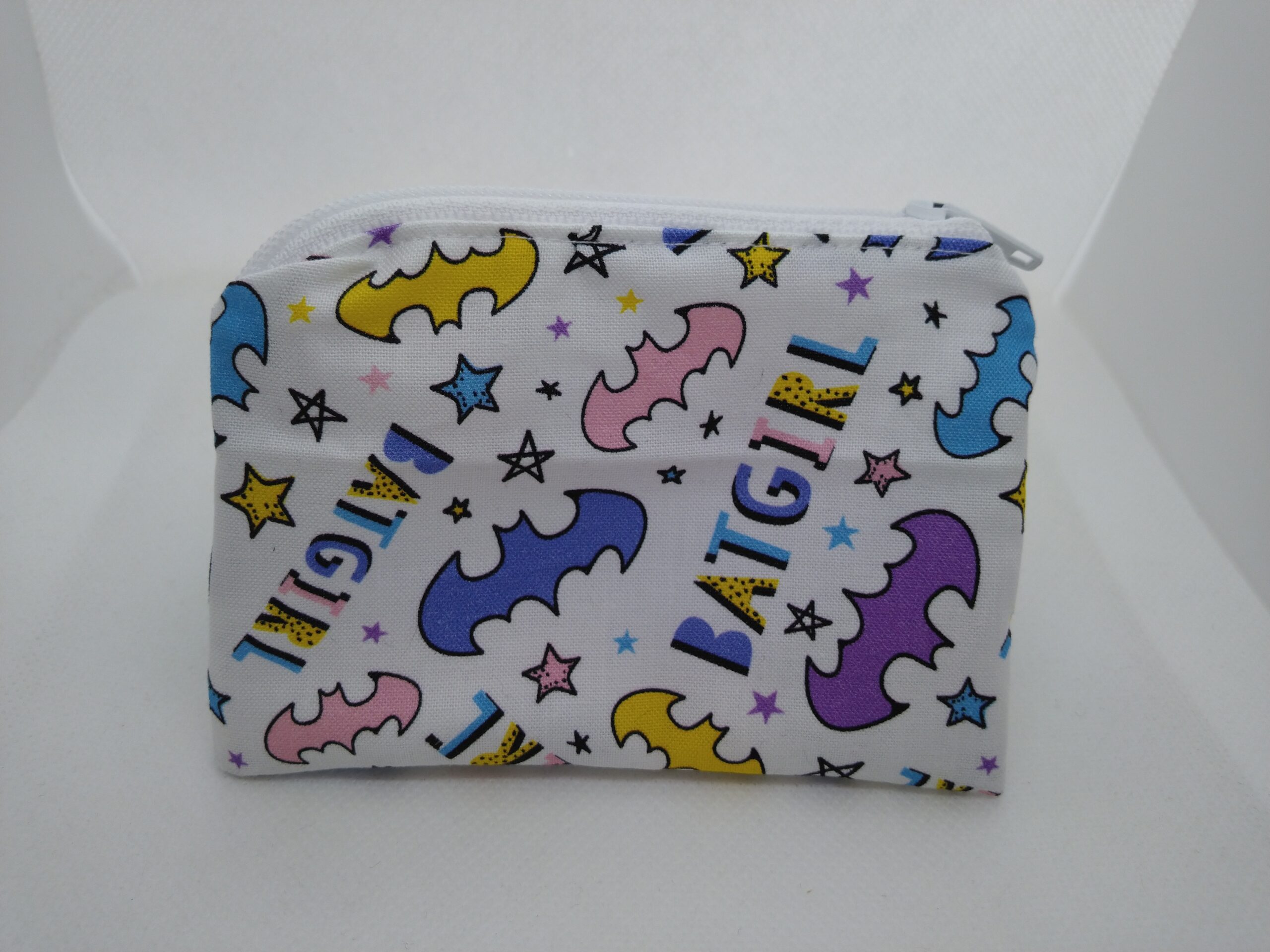 A really cute “handmade” coin purse made with Batgirl fabric. Bag can be used as a pouch, gift card holder or change purse.