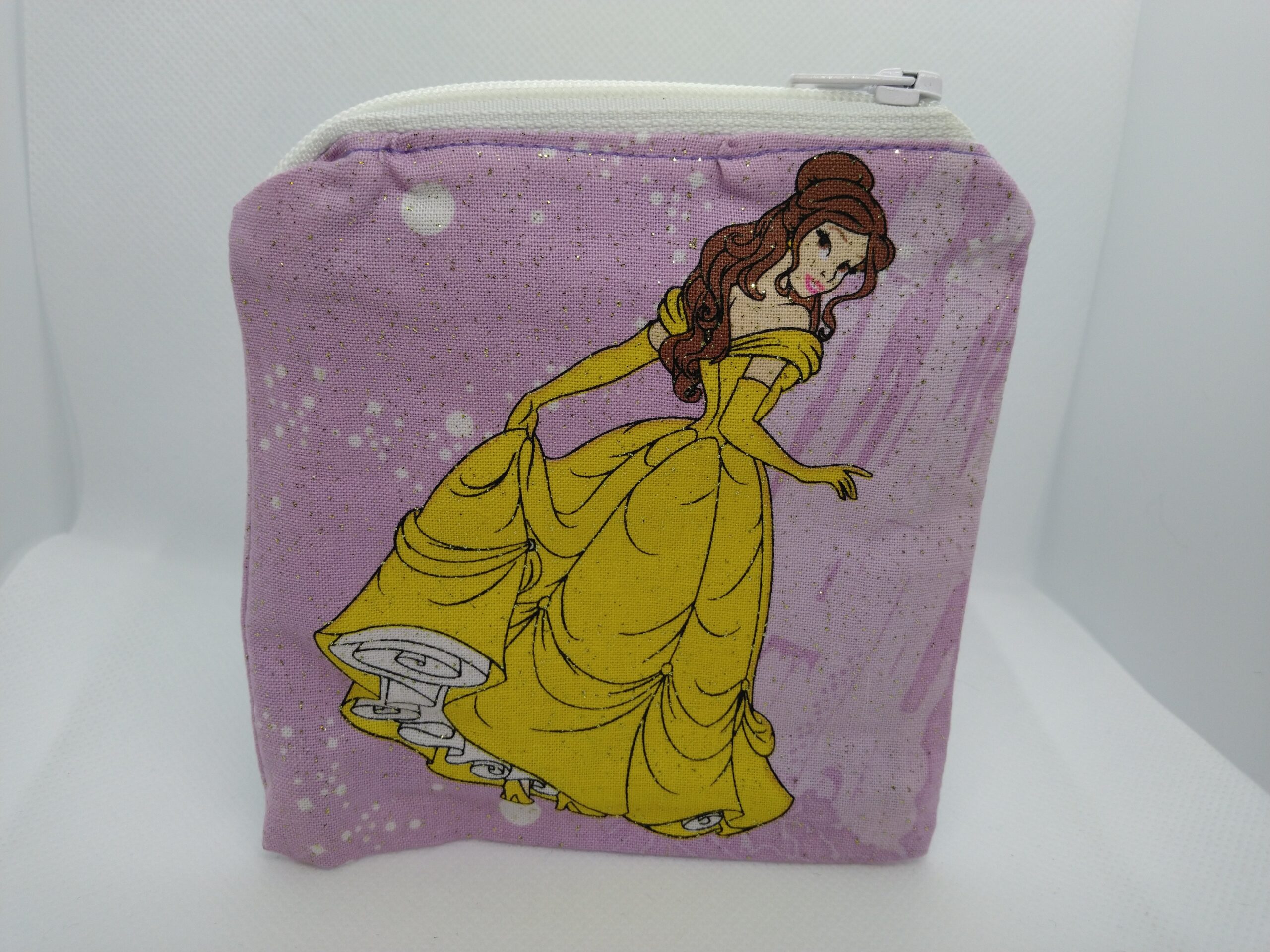 Handmade zipper coin purse made with Beauty and the Beast fabric