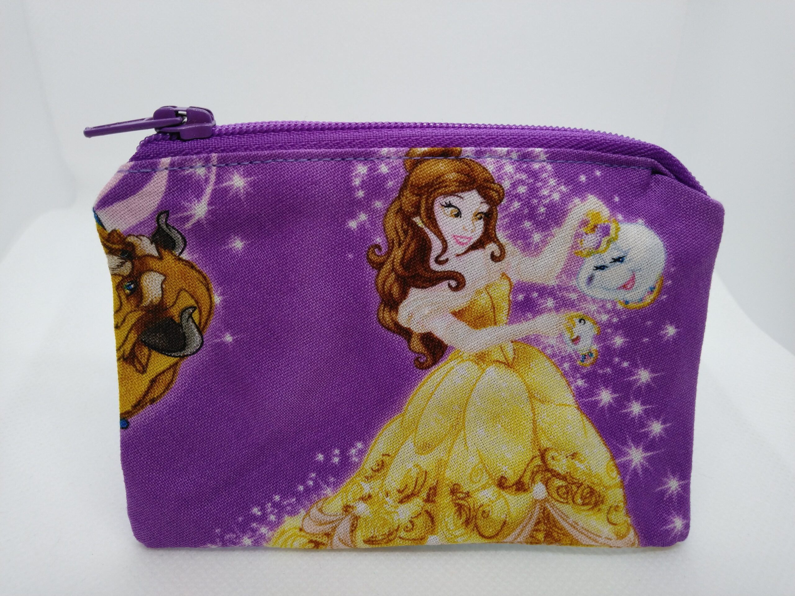 A really cute “handmade” coin purse made with Beauty and the Beast fabric. Bag can be used as a pouch, gift card holder or change purse.