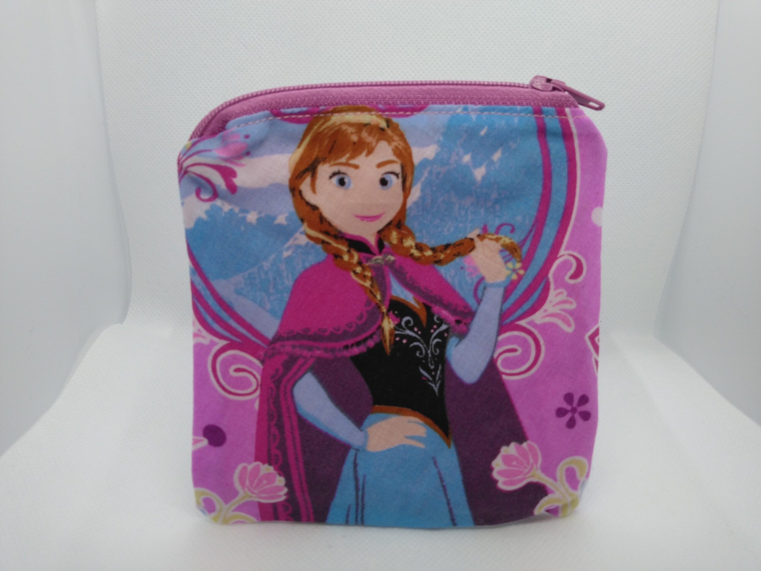 A really cute “handmade” coin purse made with Disney Frozen Anna fabric. Bag can be used as a pouch, gift card holder or change purse.
