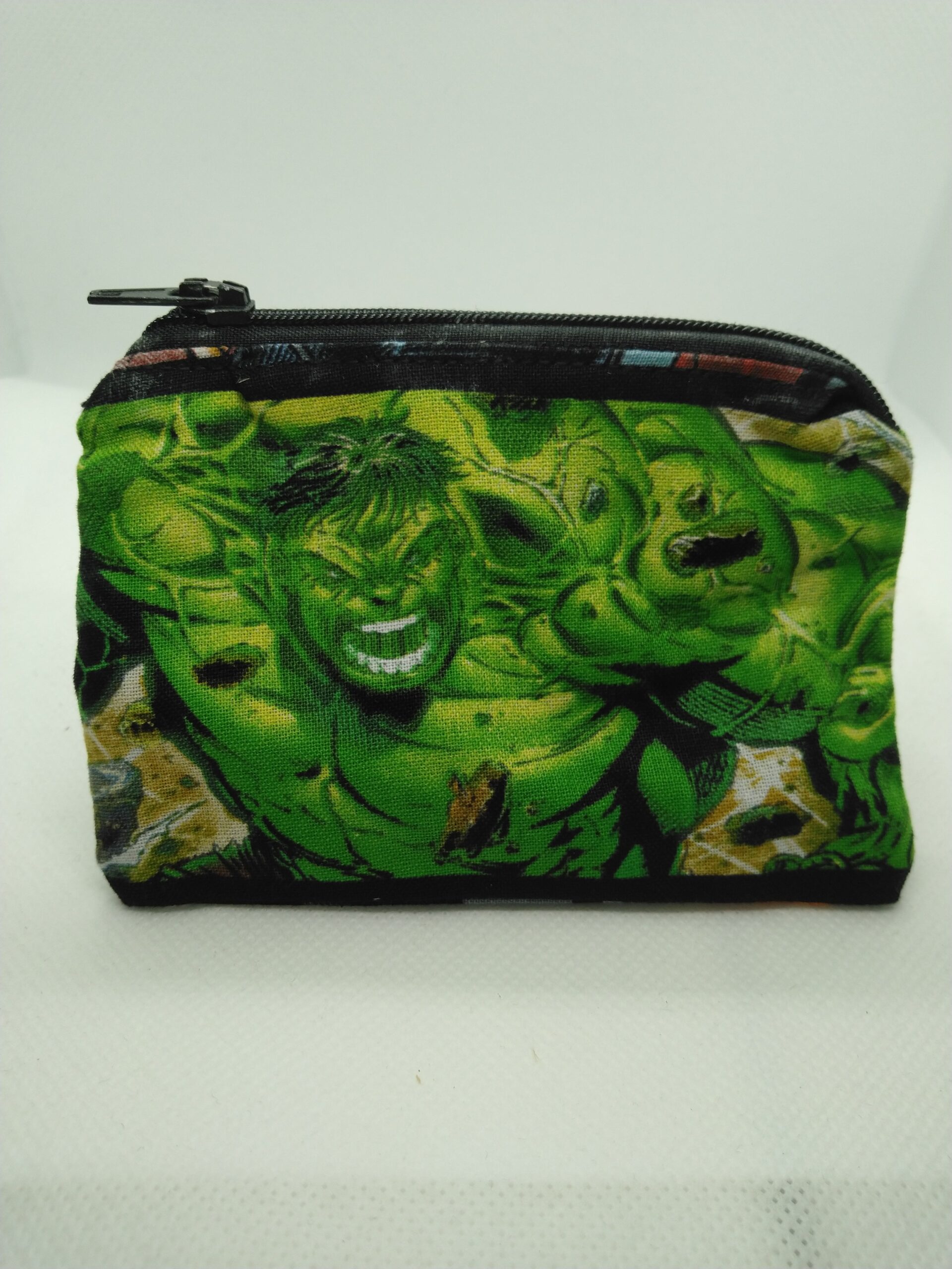 A really cute “handmade” coin purse made with Marvel Incredible Hulk fabric. Bag can be used as a pouch, gift card holder or change purse.