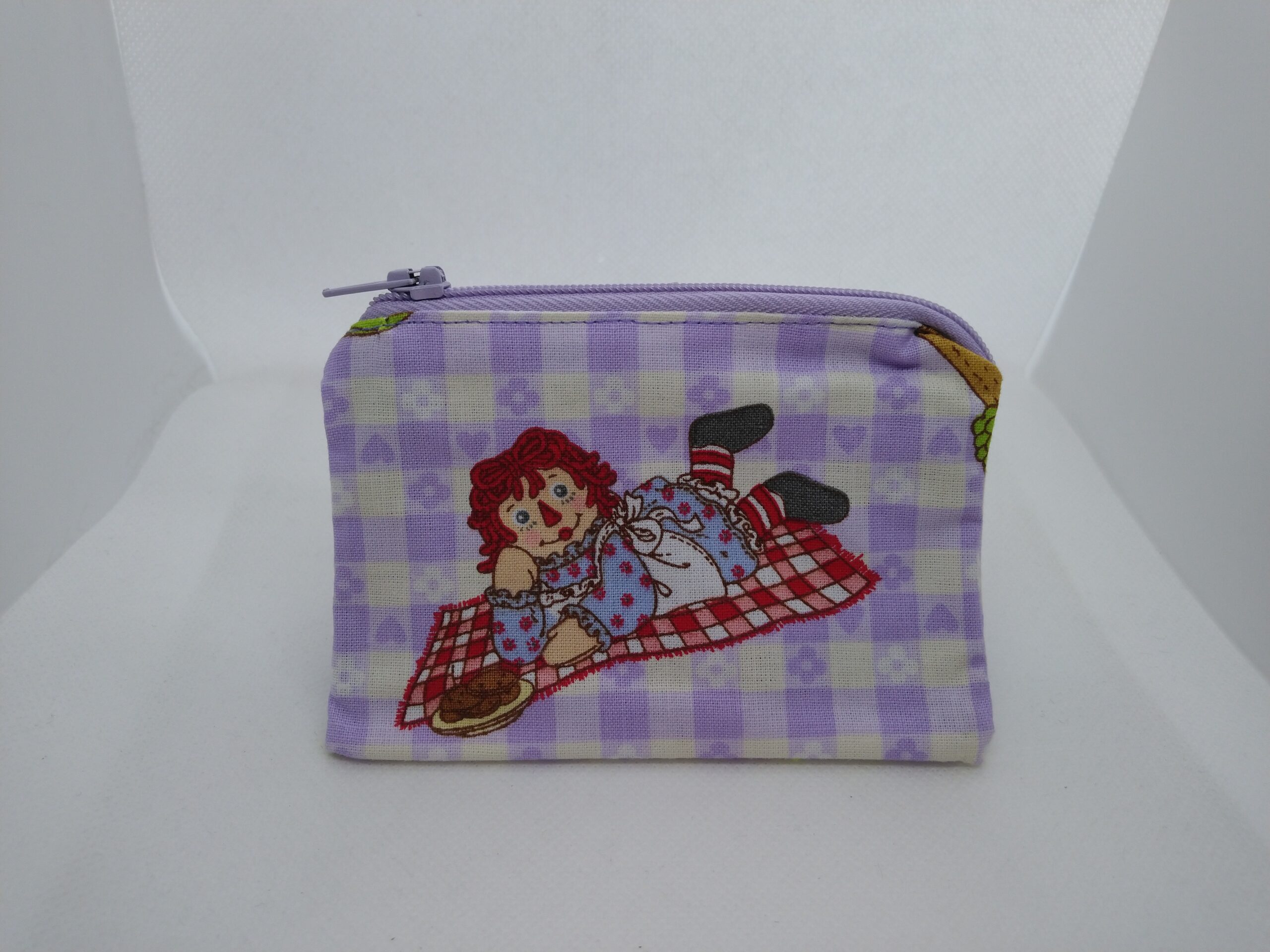 A really cute “handmade” coin purse made with Raggedy Ann fabric. Bag can be used as a pouch, gift card holder or change purse.